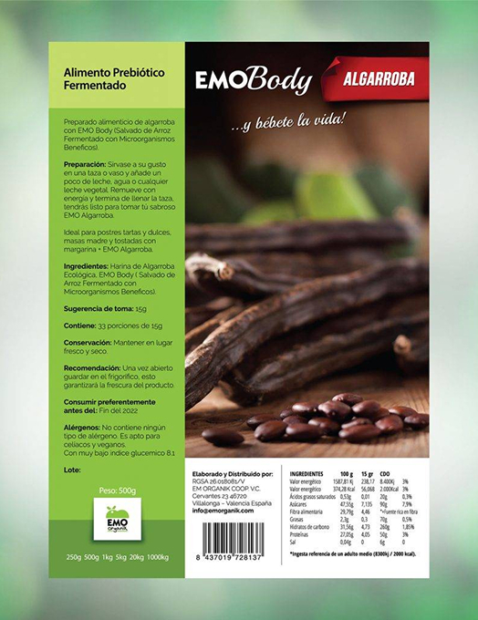 Preparado alimenticio de HARINA DE ALGARROBA ECOLÓGICA Y EMO Body (Salvado de Arroz Fermentado con Microorganismos Benéficos).